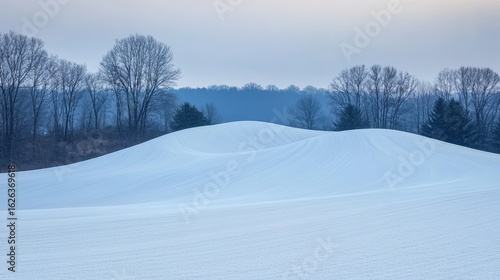 Serene Winter Landscape with Rolling Snow Hills and Bare Trees