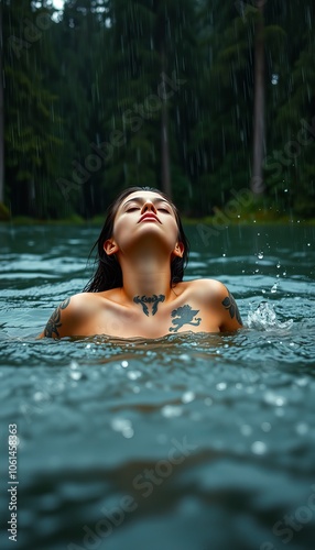 woman, swimming, forest, lake, nature, calmness, rain, tattoo, water, leisure, relaxation, beauty, serenity, outdoors, landscape, summer, splash, tree, peaceful, calm, enjoyment, environment, wildlife, refreshment, freedom, body, adventure, aquatic, wilderness, natural, scenery, meditation, moment, emotion, joy, solitude, rejuvenation, harmony, scenic