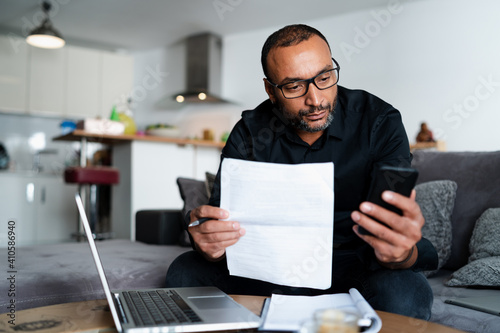 indoor, male, room, couch, smile, sofa, life, american, living room, look, salon, individual, human, lounge, afro, mixed race, home, photogenic, 40s, middle-aged, beard, person, stylish, good-looking, attractive, elegant, smart, good, being, expression, multiracial, diverse, management, economic, accounting, wealth, investment, finance, businessman, executive, director, entrepreneur, investigation, laptop, tablet, pad, document, focused, serious, goggles