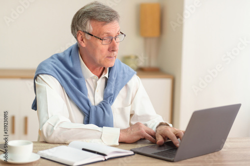 grandfather, professional, contraption, laptop, caucasian, web, using, sitting, background, elderly, white, 60s, people, cyberspace, person, modern, typing, aged, online, retirement, employment, business, gentleman, home, male, adult, successful, senior, distant, 1, man, retired, computer, job, 50s, entrepreneur, lifestyle, remote, technology, freelance, casual attire, confident, browsing, work, serious, office, career