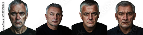 Serious thoughtful portrait of a mature gray haired businessman in a monochrome minimalist studio setting The man has a stern contemplative expression conveying a sense of experience authority