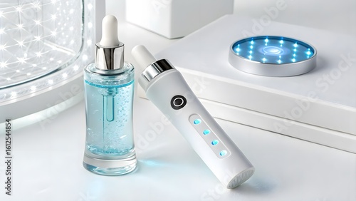 device, serum, ampoule, interface, glowing, skincare, high technology, beauty, advertisement, visual, product, modern, design, technology, closeup, cosmetic, innovation, tool, clean, medicals, concept, digital, premium, laboratory