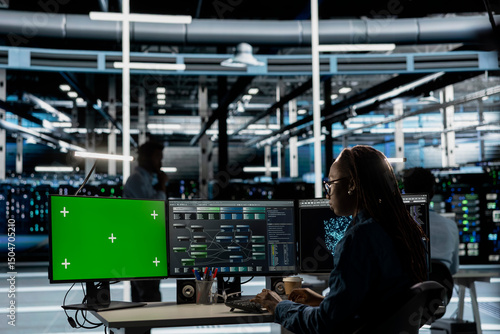 computer, system, ai, information technology, chroma key, african american, computer scientist, engineer, technician, server, artificial intelligence, server room, device, work, optimize, storage, network, setting, downtime, infrastructure, programming, employee, technology, visualisation, digital, science, software, expert, high technology, business, hardware, data processing, setup, job, equipment, database