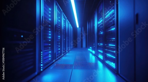 Server Room with Blue Neon Lights