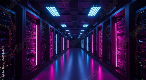 server, room, equipment, rack, lighting, technology, datum, center, corridor, electronic, blue, purple, futuristic, indoor, network, digital, infrastructure, computing, storage, connection, power, cable, wire, system, business, modern, industrial, telecom, maintenance, security, automation, process, design, architecture, background, workspace, innovation