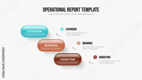 Service Proposal 3 Step Diagram Presentation Design. Investor Development Frame Layout Vector Illustration. Market Review Three Element Infographic Slideshow Template.