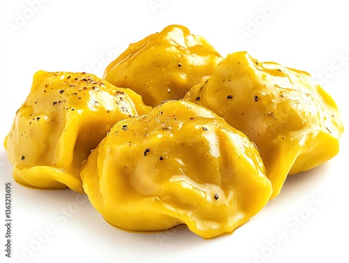 Serving of Cheese Ravioli with Black Pepper Sprinkling on a White Background