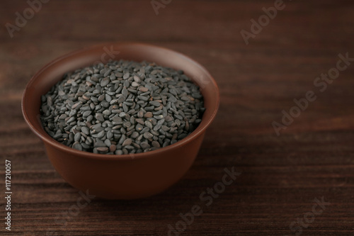 Sesame seeds on wooden background