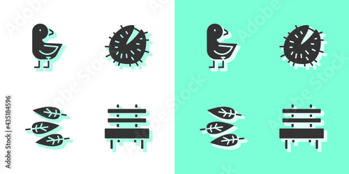 Set Bench, Little chick, Leaf or leaves and Chestnut icon. Vector