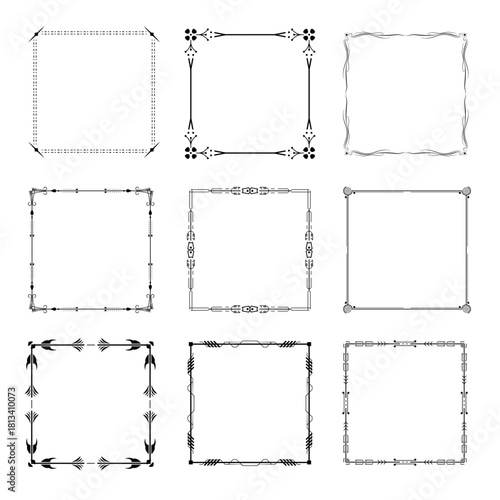 Set Black Simple Line Frame Collection Doodle Square Floral Frame Elements Vector Design Style Sketch Isolated Illustration For Banner