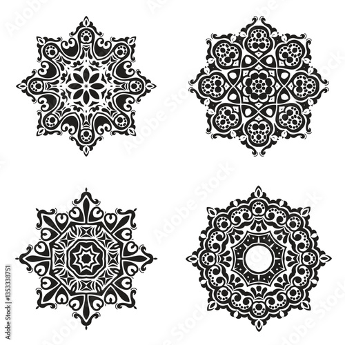 set bundle Black and white mandala vector element