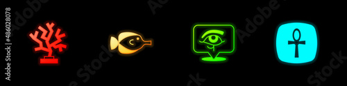 Set Coral, Butterfly fish, Eye of Horus and Cross ankh icon. Vector
