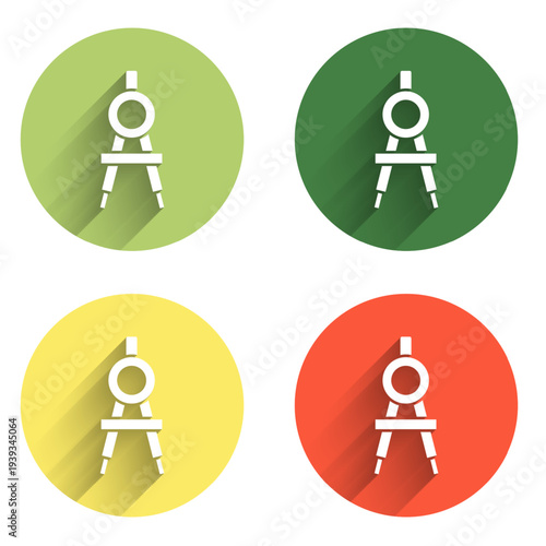 Set Drawing compass icon isolated with long shadow background. Compasses sign. Drawing and educational tools. Geometric instrument. Color circle button. Vector
