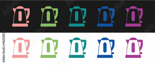 Set Electric kettle icon isolated on black and white background. Teapot icon. Vector