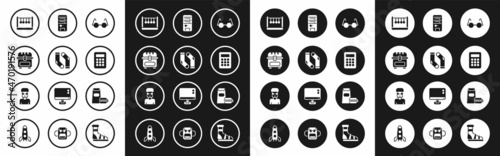 Set Eyeglasses, Socks, Antique treasure chest, Pendulum, Calculator, Computer, Burger and Nerd geek icon. Vector