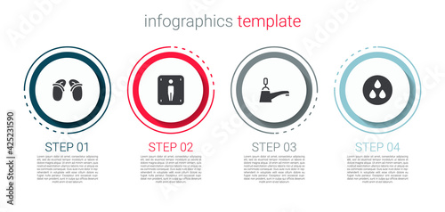 Set Flip flops, Male toilet, Water tap and drop. Business infographic template. Vector