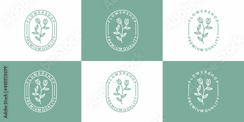 set florist logo design template vintage