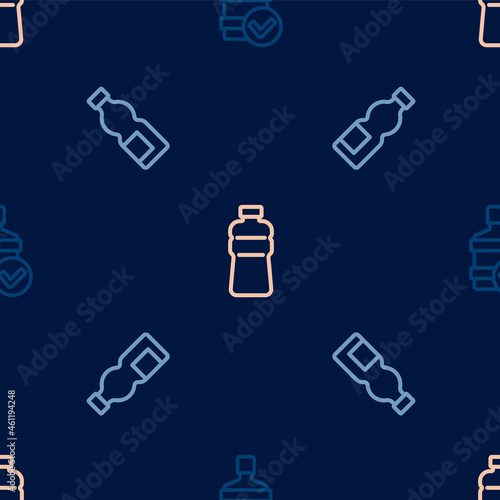 Set line Big bottle with clean water, Bottle of and on seamless pattern. Vector