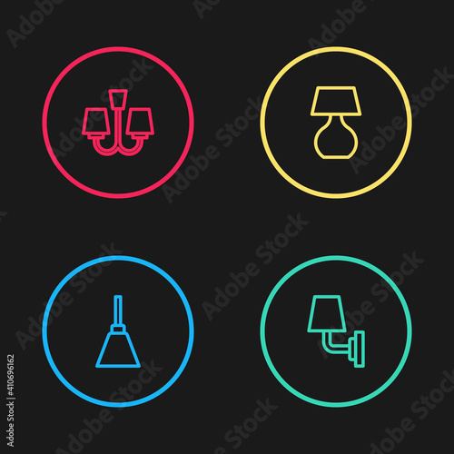 Set line Chandelier, Wall lamp or sconce, Table and icon. Vector.
