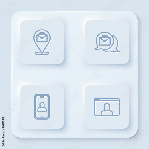 Set line Online working, , Video chat conference and . White square button. Vector