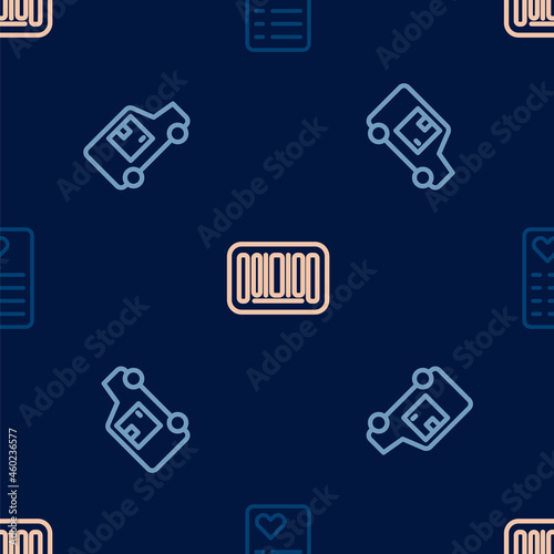 Set line Shopping list, Delivery cargo truck and Barcode on seamless pattern. Vector