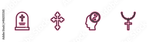 Set line Tombstone with cross, Yin Yang, Christian and chain icon. Vector.