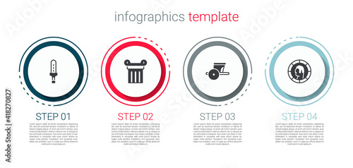 Set Medieval sword, Ancient column, chariot and Greek coin. Business infographic template. Vector.