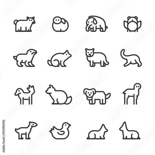 Set of 16 Simple Animal Line Icons