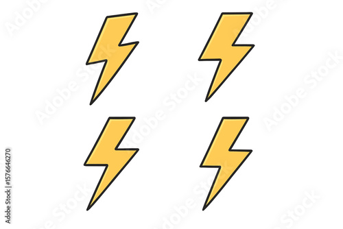 Set of 4 Lightning Flat Icons, Energy Flash Symbols, Thunderbolt Signs, Electricity Power and Speed Vector, Electric Bolt Graphic with Shading and Line Art