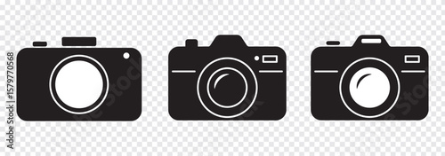 Set of a Camera icon. Black and white Colors icon. Flat illustration of vector icon isolated on white background. Camera sign and symbols.
