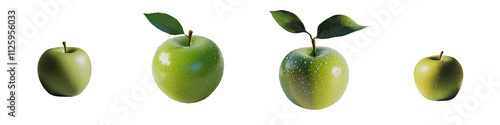 set of A green apple with two leaves, a green apple with two leaves, green apple and two leaves, green apple with two leaves, green apple with two leaves nature scene, on a transparent backgrounds