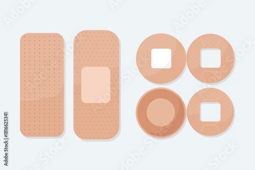 Set of Adhesive Bandages in Multiple Shapes – Medical Plasters Collection on Clean Background
