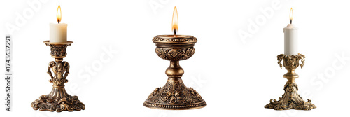 Set of Alchemy England Baroque Gothic candle holder in antique gold finish on transparent png background. Ai generated