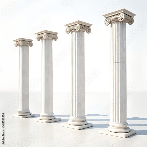 Set of Ancient Greek Columns in a Row – Classical Architecture Elements