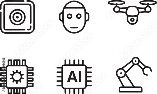 Set of Artificial Intelligence Technology Icons, AI and Digital Tech Line Art Symbols, Modern Futuristic Innovation Outline Icon Collection