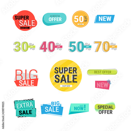 Set of banner elements, discount tag collection, special offer. Stickers, banner, label, sale, offers and promotions template.