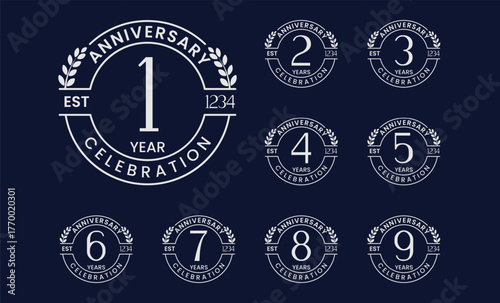 Set of birthday number logo design. 1, 2, 3, 4, 5, 6, 7, 8, 9, premium anniversary symbol with wheat and elegant concept. Years badge vector template