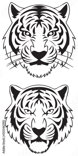 Set of Black and White Tiger Head Illustrations Tiger Head Design