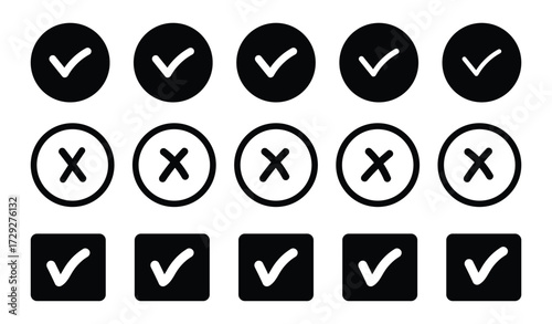 check, cross, vector, tick, circle, mark, icon, signs, positive, checkmark, isolated, flat, confirm, illustration, label, symbol, web, buttons, correct, yes, accept, checkbox, done, graphic, ok, shape, checklist, success, vote, choice, choose, element, concept, agreements, agree, answer, approval, certificate, medal, question, right, test, wrong, approved, quality, website, x, badge, business