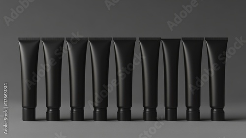 Set of black cosmetic tubes. Closed blank tubes with caps. Realistic mockup. Long nozzle tube. for ointment or salve. Gel serum. Korean packaging. Lip gloss. Toothpaste. Hand cream