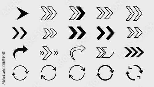 arrow, icon, refresh, reload, direction, navigation, web design, graphic, design, illustration, symbol, buttons, pointer, forward, back, next, previous, update, cycle, circular, interface, digital, modern, minimalist, set, collection, outline, black, technology