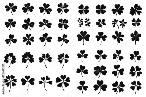 Set of black silhouette clover leaf icons, flat design, vector illustration, white background. Clover silhouette set vector design big pack of shamrock illustration and icon.