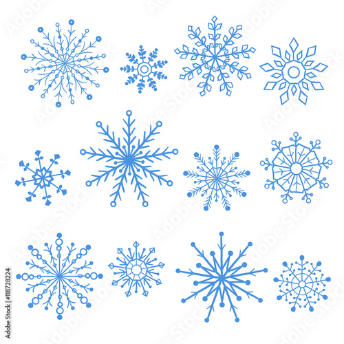 Set of Blue vector snowflakes