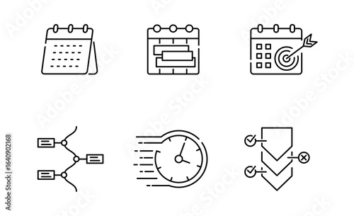 calendar, icon, project, schedule, checklist, structure, planner, scheme, target, meeting, process, chart, achievement, archive, idea, network, design, team, work, research, success, analysis, time, planning, presentation, brainstorming, strategy, decision, flowchart, management, implementation, workflow, organisation, system, stopwatch, monitor, memo, objective, agile, compliance