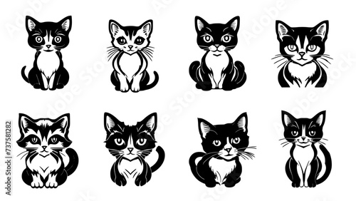 cat, silhouette, animal, vector, cartoon, illustration, set, pet, kitten, cute, dog, head, icon, baby, character, collection, animal, funny, fox, mammal, design, art, tiger, face, bear, pig