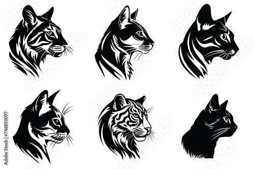set of cats black and white vector illustration isolated transparent background logo, cut out or cutout t-shirt print design