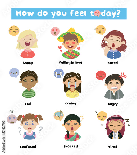 preschool, education, educational, illustration, vector, kindergarten, cute, cartoon, feeling, happy, sad, angry, shocked, bored, cry, confused, sleepy, children
