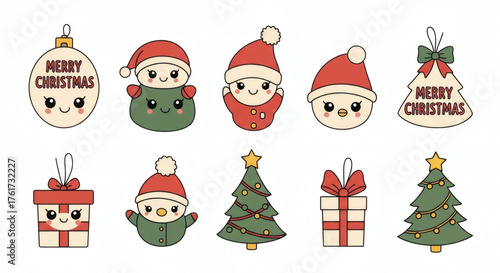 christmas, santa, tree, snowman, gift, cartoon, set, holiday, illustration, winter, vector, christmas, decoration, claus, celebration, new, year, santa, icon, snow, december, symbol, hat, cute, icon
