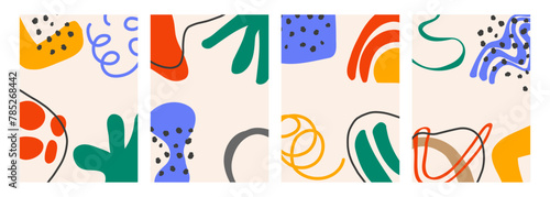 Set of cute backgrounds with various colorful hand drawn abstract shapes for creative graphic design. Vector illustration.