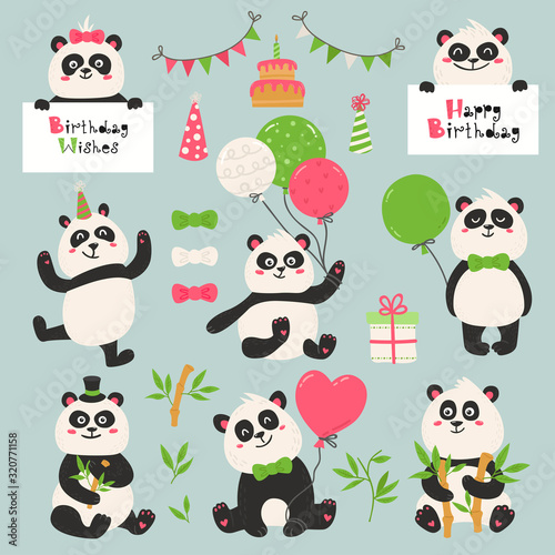 isolated, graphic, object, vector, cartoon, character, children, cute, emotion, sweet, illustration, forest, postcard, card, bear, animal, wild, wildlife, panda, love, hug, clip art, balloon, happy, greeting, print, lettering, phrase, birthday, china, mammal, plush, bamboo, chinese, asian, boy, zoo, crown, sleep, girl, lover, princess, dream, couple, set, collection, cake, gift, celebration, holiday